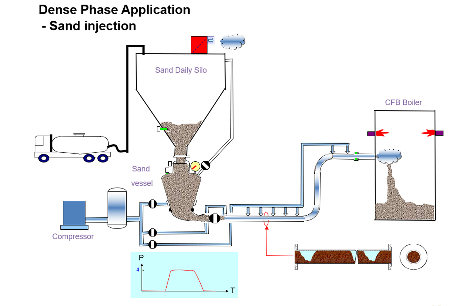 - Pemancar pasir fase padat tekanan positif blow-down adalah peralatan utama untuk udara bertekanan positif dan sistem transfer gaya partikel kasar, bubuk dengan berat jenis tinggi. Ia menggunakan udara terkompresi sebagai gaya transfer, dan memasang penstabil kepadatan dalam jarak tertentu, mengangkut material kering, kasar, dan berat jenis lebih tinggi secara batch. Ini telah diterapkan secara luas dalam sistem pengangkutan pasir dan injeksi untuk fluidized bed dan pembangkit listrik boiler berbahan bakar batubara saja.